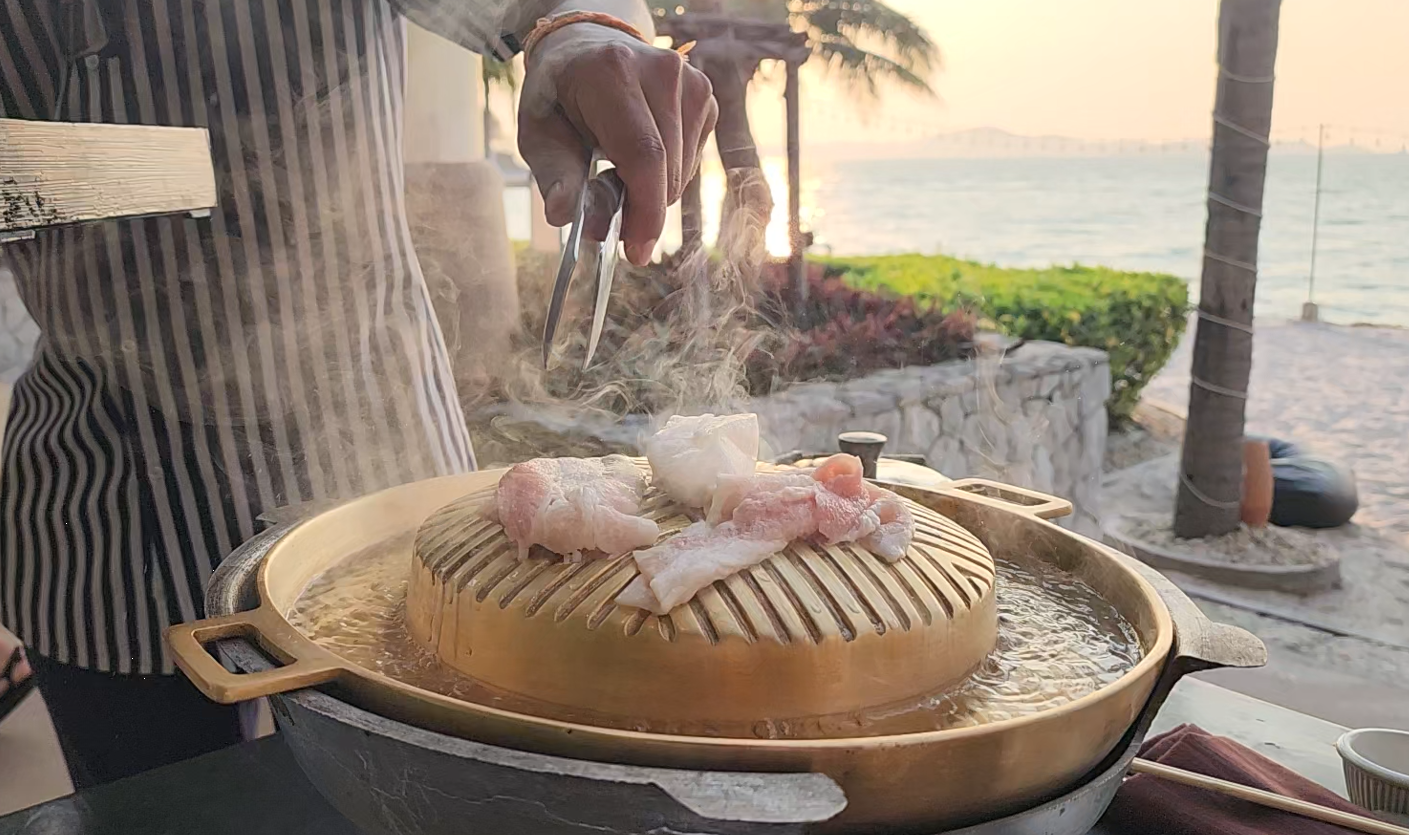 안녕하세요? "Do it" 입니다. 오늘 포스팅은 거두절미하고, 파타야여행에서 처음먹어봤던 태국식 샤브샤브인 무카타 라는 요리를 먹었던 내용을 포스팅하겠습니다. 태국여행을 많이 해보신 분들은 아실텐데요. 사실 태국에 샤브샤브가게는 엄청 많습니다. 대형몰에 거의 입점이 되있는 mk수키가 대표적이고, 그 외에 '샤브시'나 '모모파라다이스' 같은 것들 말이죠. 지극히 개인적으로는 mk수끼의 경우 아..좀 맛이 너무 밋밋하다고할까? 너무 건강한 맛이어서 자극적인 맛을 좋아하는 저같은 사람에게는 그냥그런 맛.. 무카타라는 것을 알고는 있었지만, 왜인지 제가 본 무카타식당 들은 로컬중에서도 로컬느낌인 곳들이 많아서 아이와함께 편안하게 먹을수없을것 같아서 시도 해 보지 않았었는데, 몽키에서 인터컨티넨탈 리조트의 프리미엄 무카타식사 상품을 팔고있길래, 한국에서 미리 예약하고 방문했습니다.