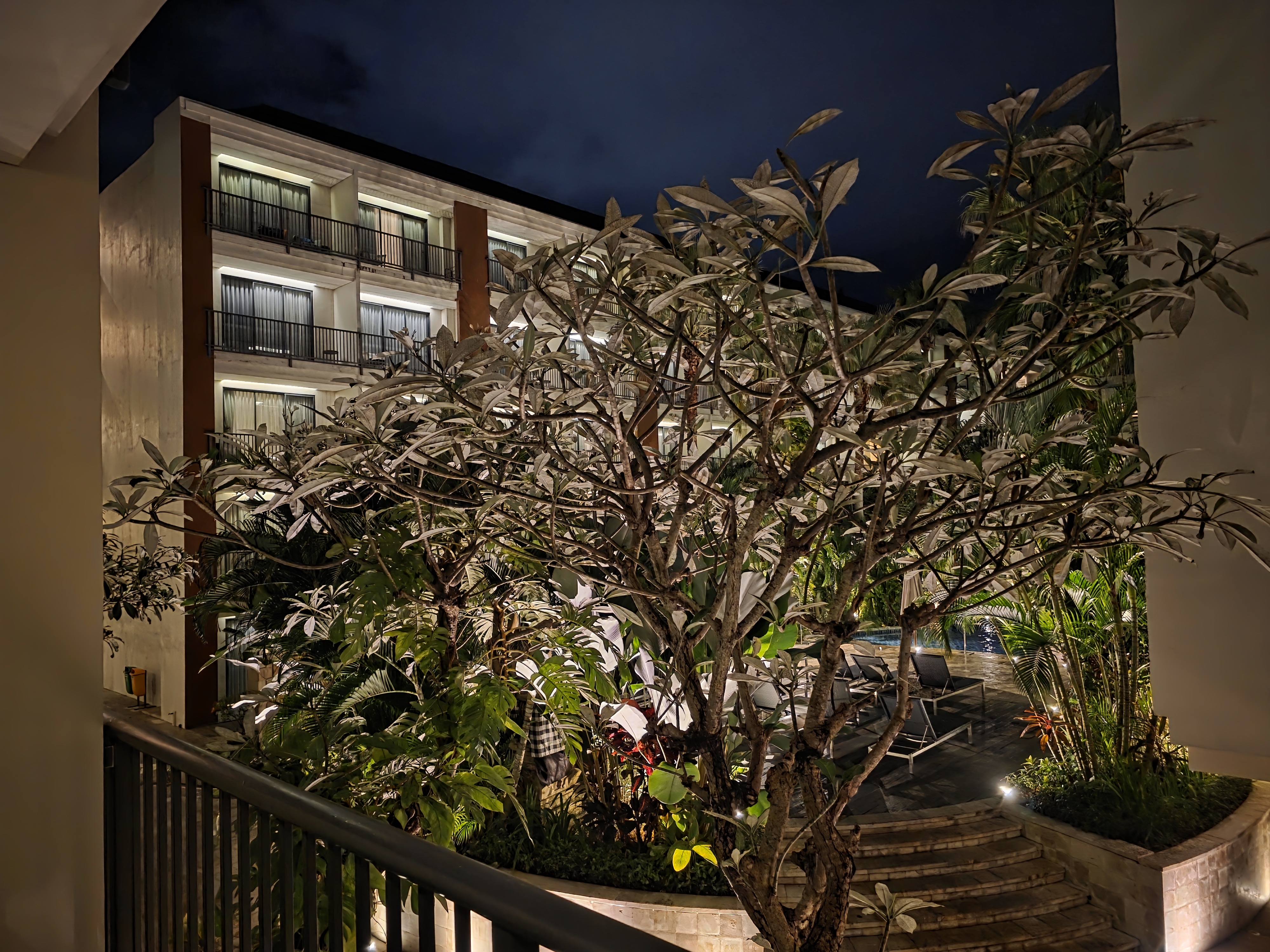 다음날 아침에 찍어본 아나테라 리조트 쿠따(Anathera Resort Kuta)의 전경입니다. 멀쩡해 보이죠?! 풀뷰 더블룸을 6만 원 정도에 예약을 했으니, 발리여행에서 도착당일 잠만 잘 호텔로는 "딱이다" 싶었습니다. 게다가 조식까지 나오니 가성비로는 괜찮다 싶었습니다.